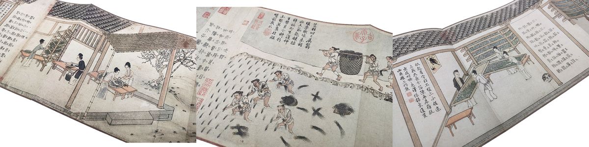 Examples include images of tilling and weaving, paintings, contractual documents and shadow-puppet play scripts.