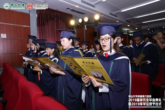 On the afternoon of June 25, the First Affiliated Hospital held the 2019 graduate commencement ceremony. Professor Yu Minbin, Deputy Secretary of SYSU Party Committee; Professor Xiao Haipeng, Vice President of SYSU and President of the First Affiliated Hospital; Dr. Luo Teng, Secretary of the Party Committee of the First Affiliated Hospital; Professor Dong Wenjie, Dean of the Graduate School of SYSU; experts from Hong Kong, Macao and Beijing, as well as academic leaders from the University and the Hospital expressed sincere wishes to more than 200 master’s and doctoral graduates.