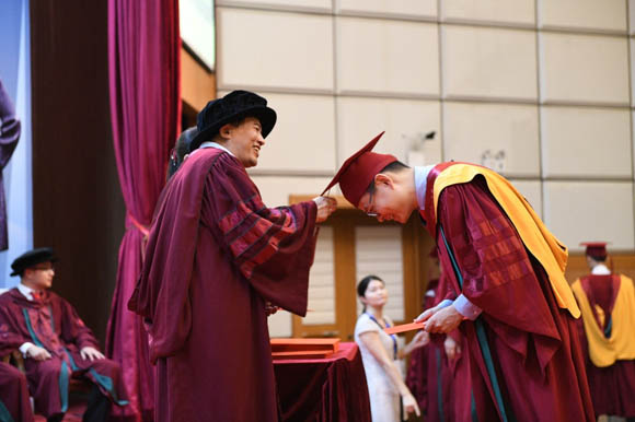 Dean Yang Guowei conferred the degree to every graduate.