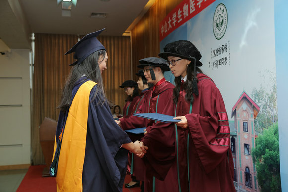 Deputy Dean Chen Dingquan read the graduation precept written by Dr. Sun Yat-sen, all graduates replied “obey the instructions”. Dean Miguel Nunes turned the tassel for every master’s and doctoral degree recipient, presented them with graduation booklets, shook hands and took photos.