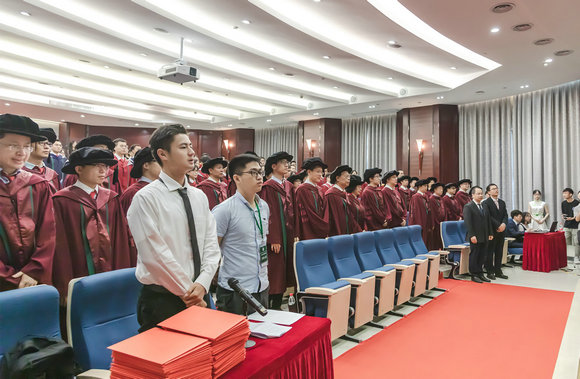 The degree ceremony started with the solemn national anthem. Deputy Dean Guo Tianwu read the graduation precept written by Dr. Sun Yat-sen, all graduatesreplied “obey the instructions”.