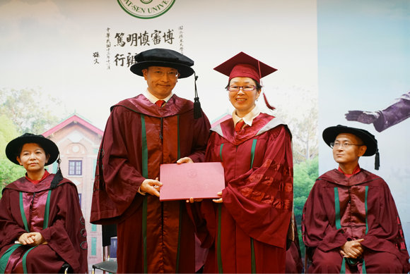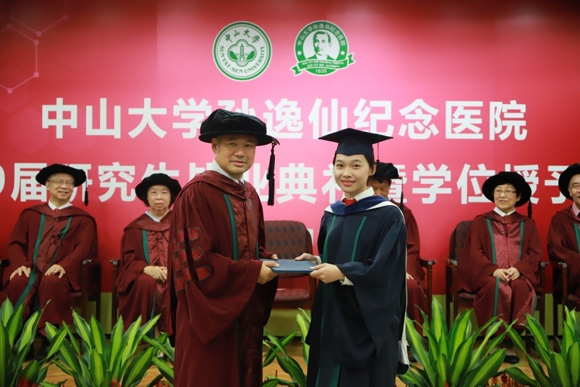 Afterwards, President of Sun Yat-sen Memorial Hospital Professor Song Erwei presented the degree certificate to every master’s and doctoral degree recipient and took photos with them.