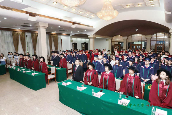 During the graduation ceremony, the School set up a photo-taking wall for the students to record the beautiful moment. After the ceremony at the dinner party, the students sang “The Mountain is High and the River is Long” to express their lover for the alma mater; some graduates recited a poem to express their affection for the SYSU campus.