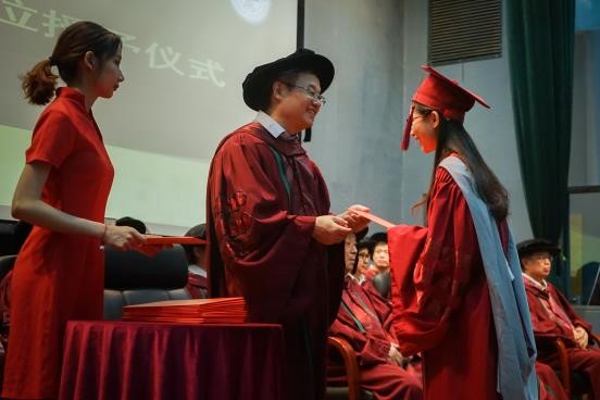 Dean Deng Shaozhi extended warm congratulations to the graduates, and thanked the teachers as well as the relatives and friends of the graduates. She expressed three expectations for the students: first, aim high and keep the enthusiasm of exploration; second, cultivate oneself and keep a simple heart; third, share weal and woe and cherish the friendship.