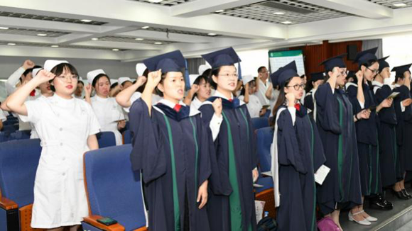All graduates stood up and solemnly recited the Nightingale Pledge, expressing their dedication to nursing and determination to carrying forward the nursing cause.