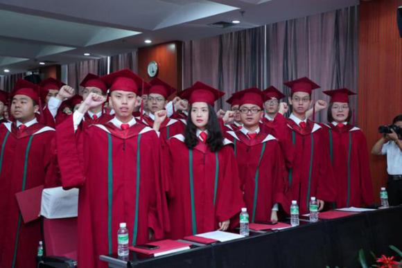 On the afternoon of June 20, the School of Law held the 2019 postgraduate graduation ceremony and the degree ceremony in the Swasey Hall on Guangzhou South Campus. The school leadership, teacher representatives, administrative staff and 193 graduates attended the ceremony, and witnessed the happy moment. The School’s Deputy Dean Ren Qiang presided over the ceremony. Dean Huang Yao presented the graduation booklet, shook hands and extended congratulations to the graduates.