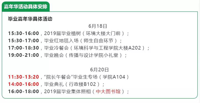 On the afternoons of June 18 and June 20, the School of Environmental Science and Engineering will hold a series of activities in the graduation carnival, including tree planting, red carpet, graduation party, lunch with the school dean, graduation ceremony and graduation photo taking.