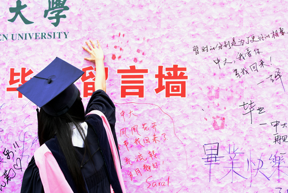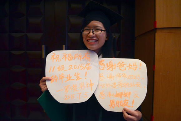 On July 5, 2015, the second day of the commencement ceremony, the graduates took in the fresh air after the torrential rain, saying goodbye to the alma mater.