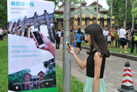 Exploring the old buildings on campus through WeChat Shake (Photo by Yang Tianyi)