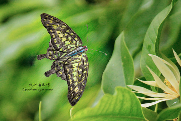 Zhu Lin applied Photoshop skills to integrate the graphiumagamemnon with the background image